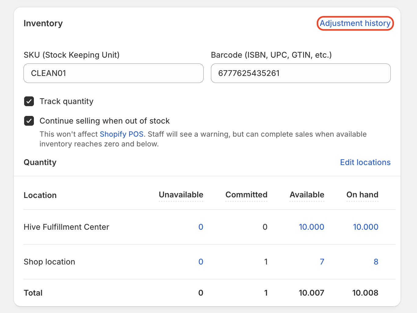 - Scroll to the “Inventory” section, and click on “Adjustment history”
