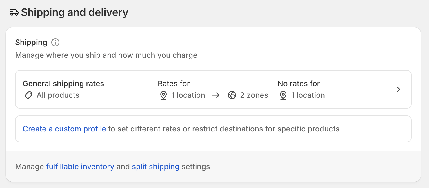 - Settings → Shipping and Delivery → General shipping rates → Fulfillment locations.
